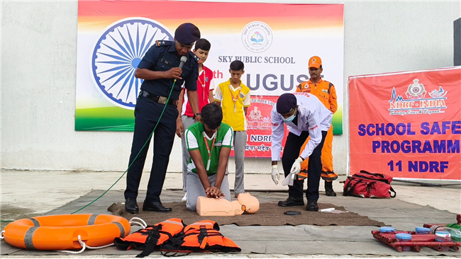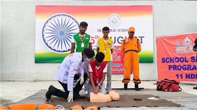 At Sky Public School, students were trained by NDRF experts in fire safety, CPR, flood relief, earthquake preparedness, accident response, snake bite first-aid & more.
